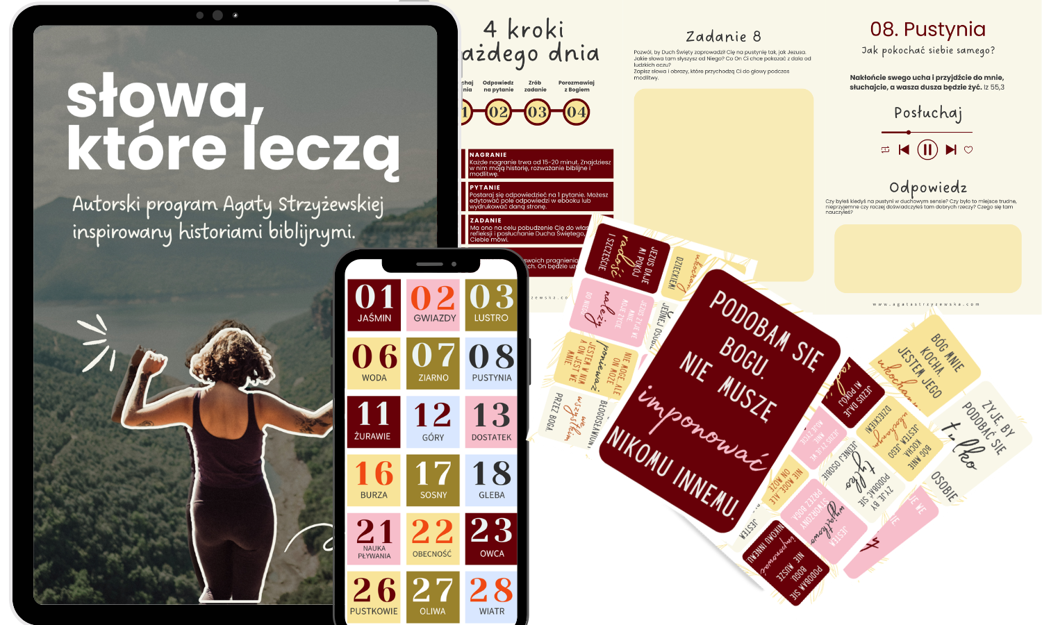 PO ZAKUPIE DOSTANIESZ PRODUKT CYFROWY. Na podany przy zakupie adres mailowy przyjdzie mail z eBookiem, kartami oraz linkiem do logowania do aplikacji Circle. W środku znajdziesz wszystkie nagrania, ćwiczenia oraz linki do spotkań online.